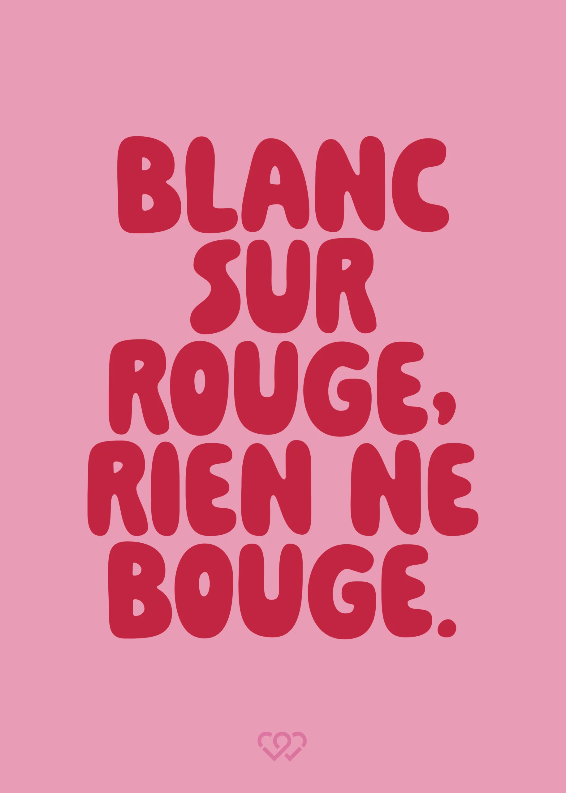 Cette création « Blanc sur Rouge, rien ne bouge », est à shopper avec son alter ego « Rouge sur Blanc, tout fout l’camp! » que vous trouverez aussi sur notre site